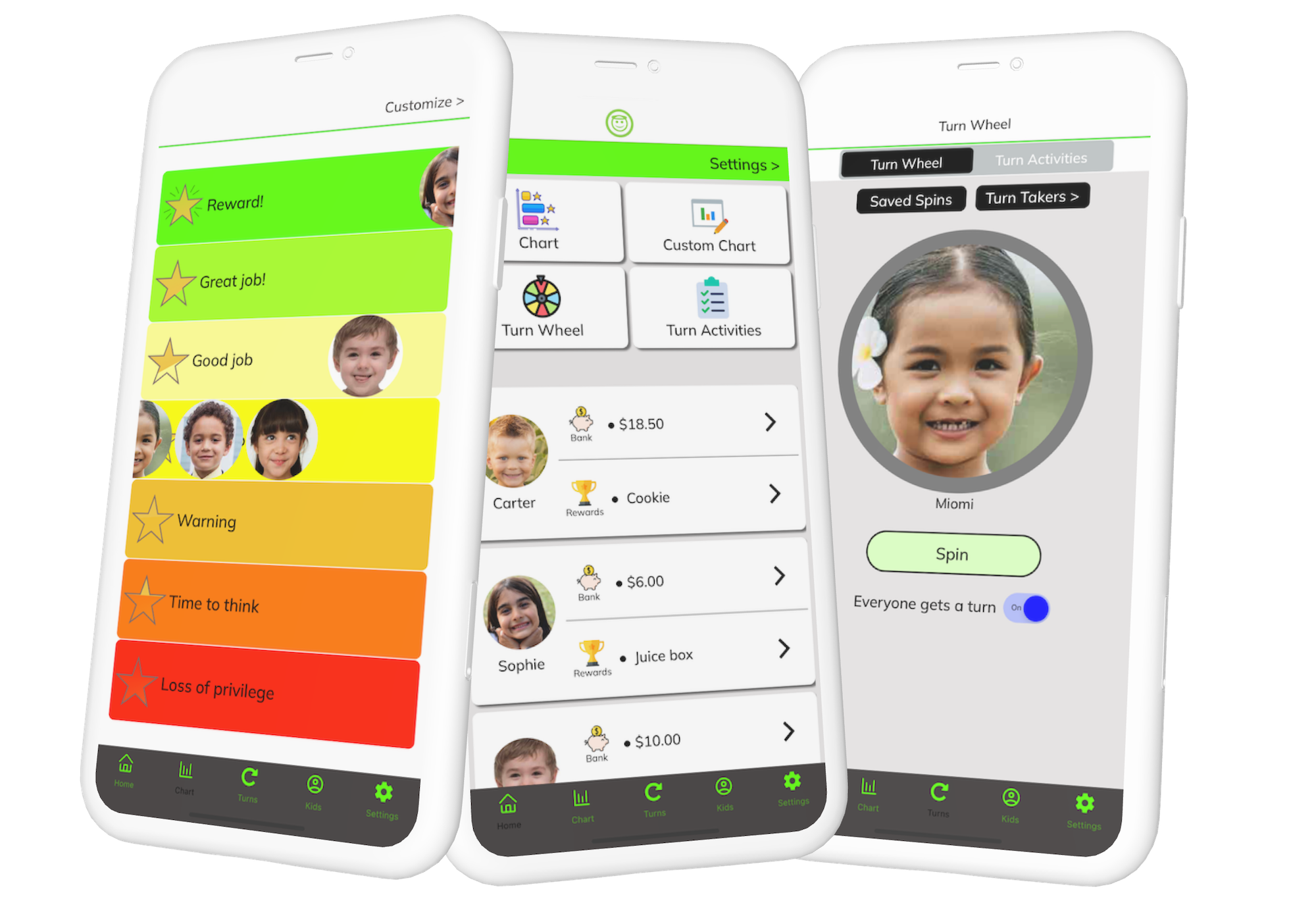 Kidlatta was created by a mom who was just tired of yelling at her kids. She found a printable behavior chart to hang up in the kitchen, and taped pictures of the kids' faces to it. This worked well, but what about when they were out at a store, a restaurant or stuck in traffic? Now that a chart, turn wheel/order and bank/rewards are available as an app, parents and caregivers can have an easier time navigating with the kids around town, or anywhere!